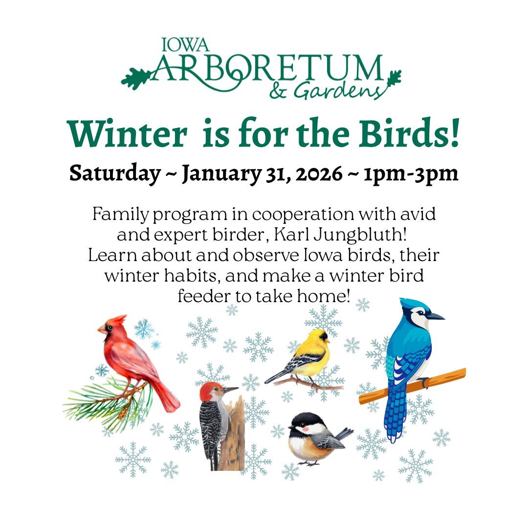Iowa Arboretum & Gardens 1875 Peach Avenue, MADRID, IAREGISTER HERE Start the new year off right and join us for some outdoor fun - snowshoeing in cooperation with Boone County Conservation! Saturday, January 17, 2026 from 1:00pm-3:00pm. You can use the snowshoes provided or bring your own. We will have a limited number of child and adult snowshoes available, so registration is required […]