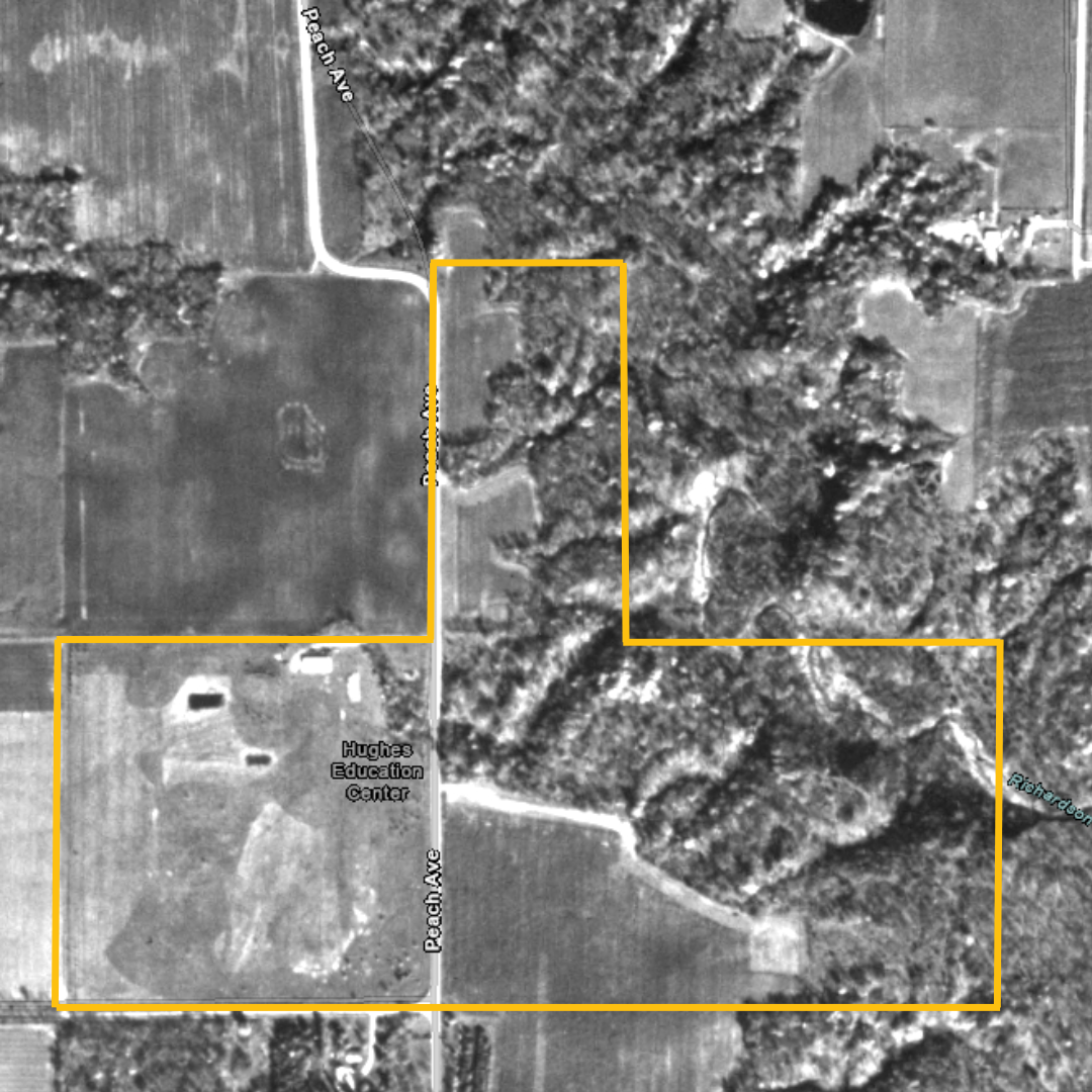 Depicted below are aerial photographs taken by the United States military in conjunction with the United States Geological Survey. In the photographs you can see the original 40 acres of the Iowa Arboretum and Gardens were still woodlands until the 1960’s (rare for Central Iowa) meanwhile the surrounding land had been converted from woodland to prairie or farmland. Sparse canopy in the woodlands indicate significant timber harvest, likely in the 1910’s-1920’s.