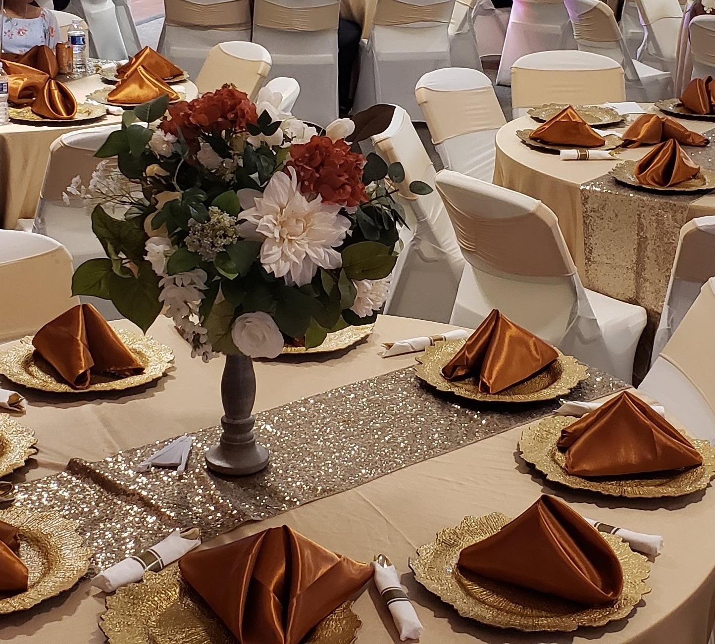 - Rectangle tables used for gifts, food, card/sign-in, cake, etc…